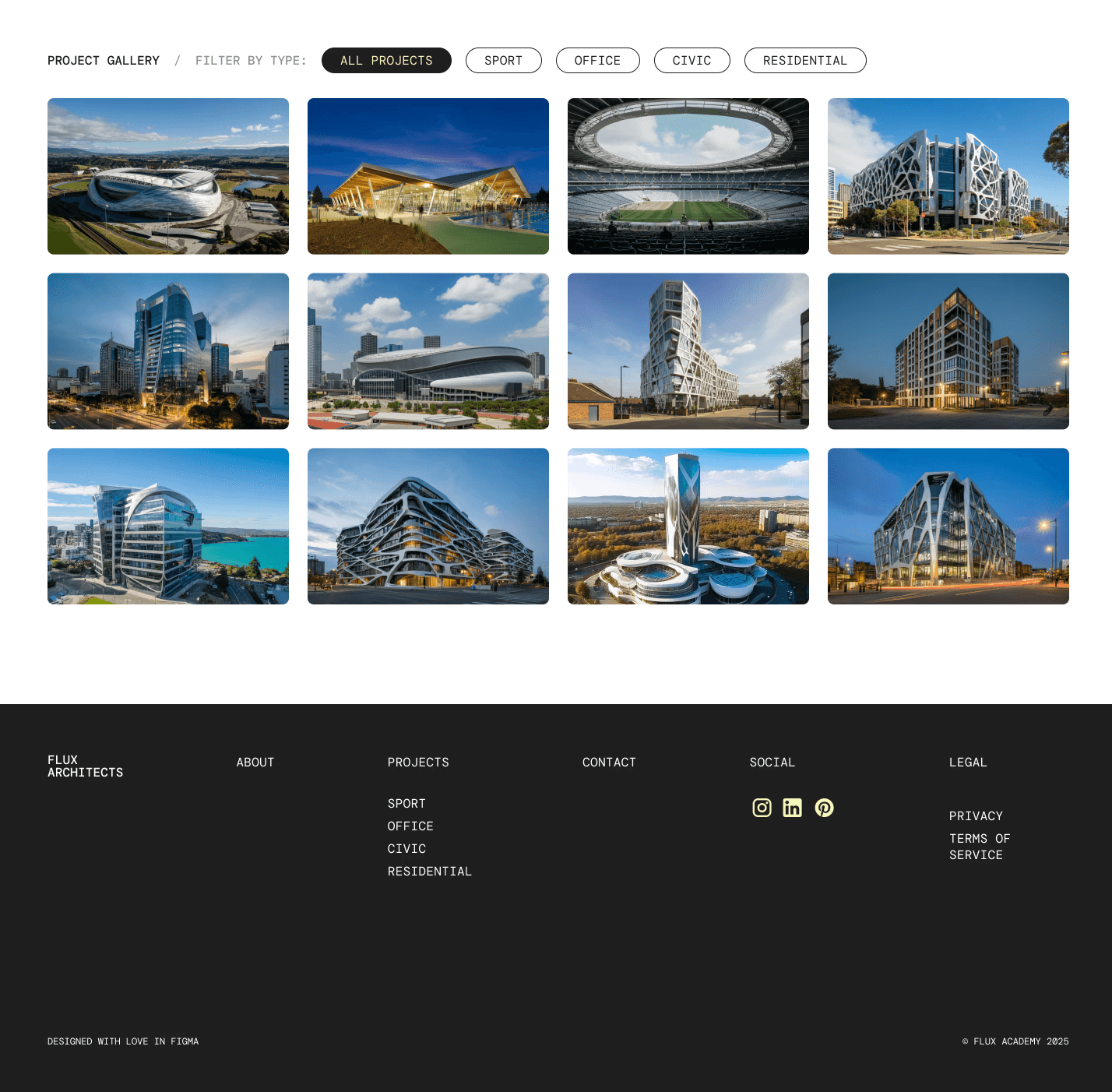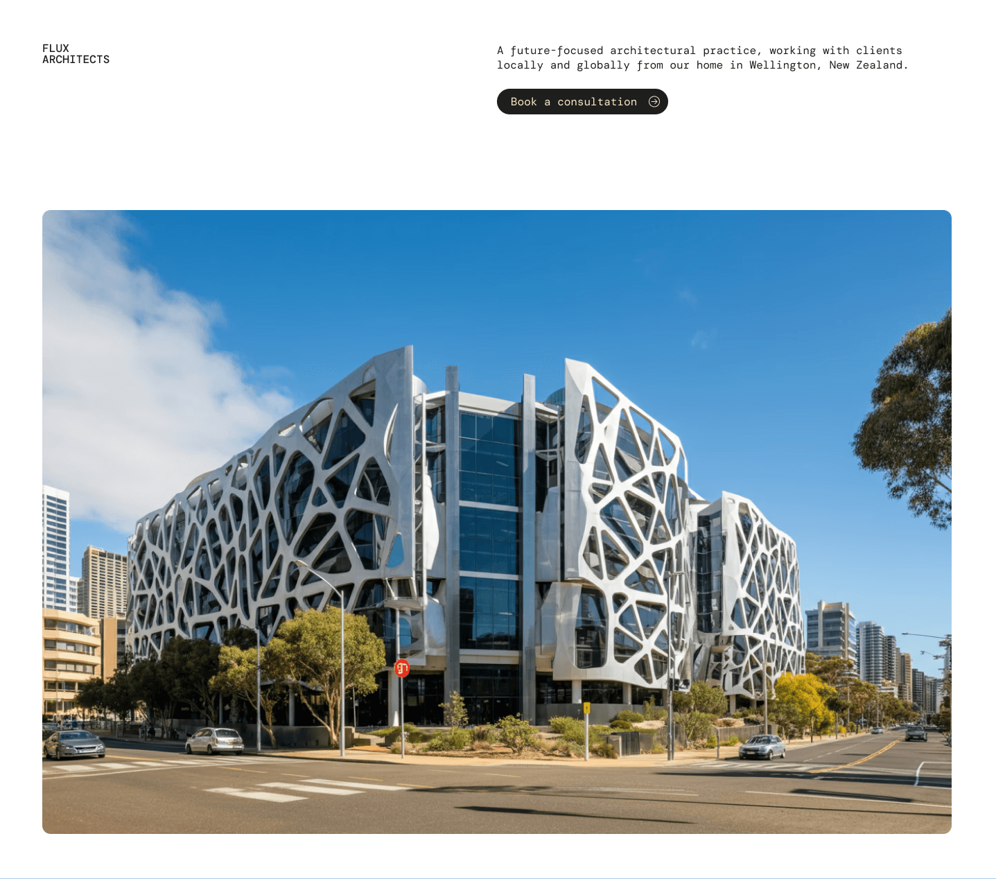 Flux Architects is a portfolio website designed to showcase architectural work through a clear, structured, and highly visual interface.